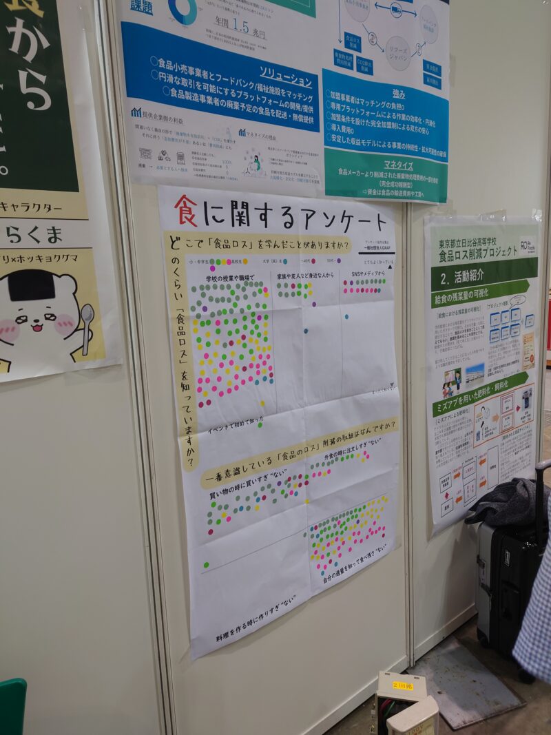 ポストイットは、普段取り組んでいる環境活動やこれから取り組みたい環境活動を自由に書いていただいたものです。アンケートは、「食品のロス」への意識や実際に取り組んでいることを尋ねたものでした。