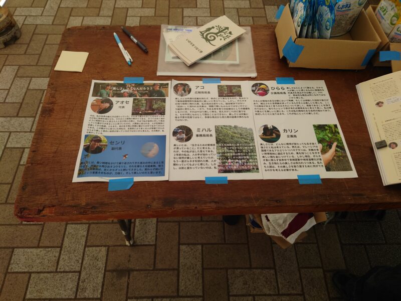 その他、活動紹介やイベント告知のチラシ、ブース運営を手伝った「一般社団法人GRAF」が展開するグッズを配布したり、活動をまとめたポスターを掲示したりすることで、私たちの取組を周知しました。